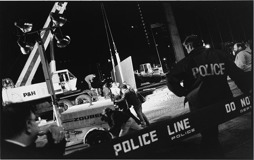 The dismantling of Tilted Arc, Federal Plaza, New York, March 15, 1989. Photo by Jennifer Kotter